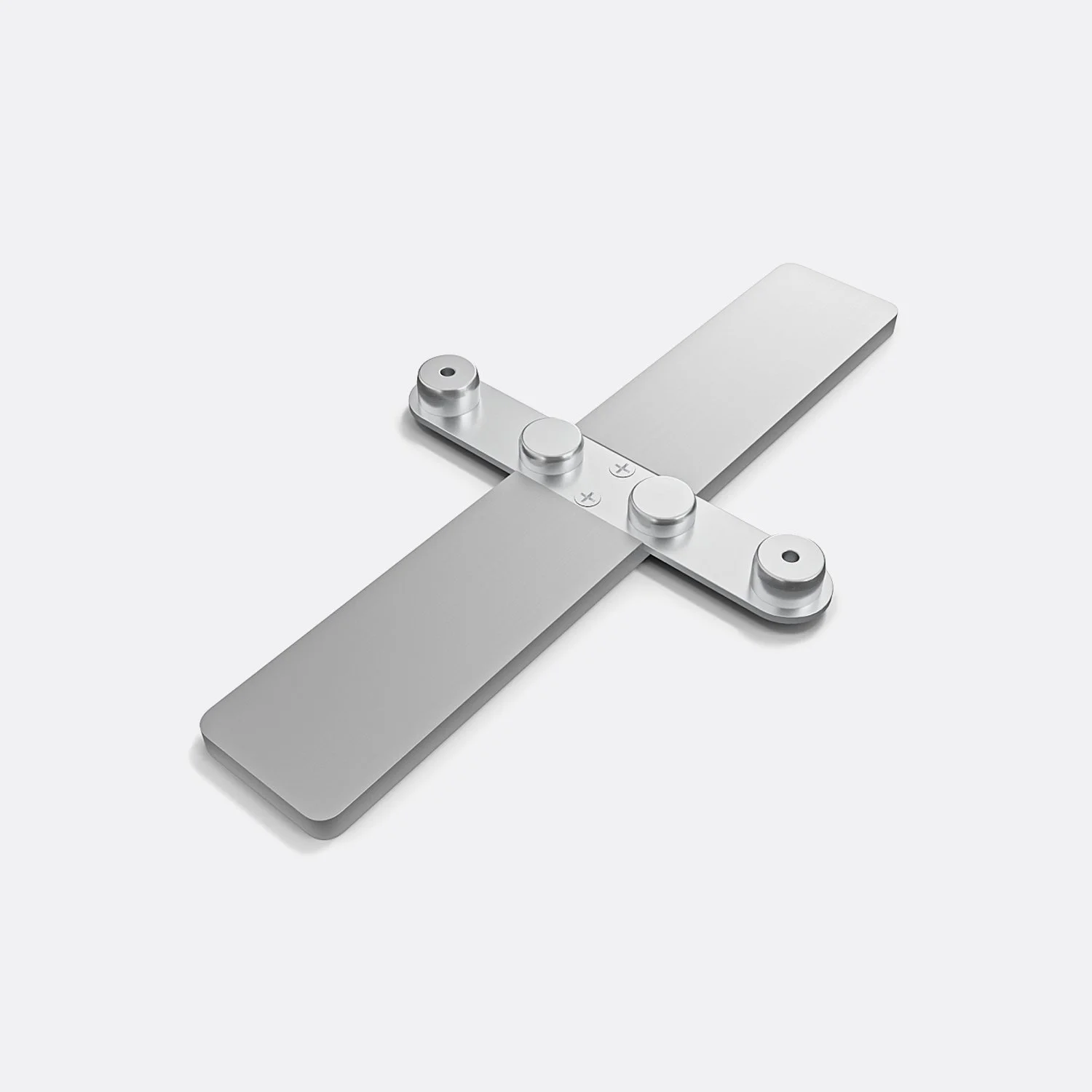 Tutti i componenti dello stand si uniscono tra loro con semplicità grazie a dei connettori e perni predisposti.
